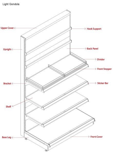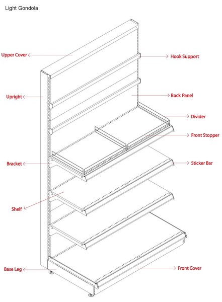 Light duty gondola shelving units. You can select from our range of different size products or we can custom made per your specifications to meet your requirement.
